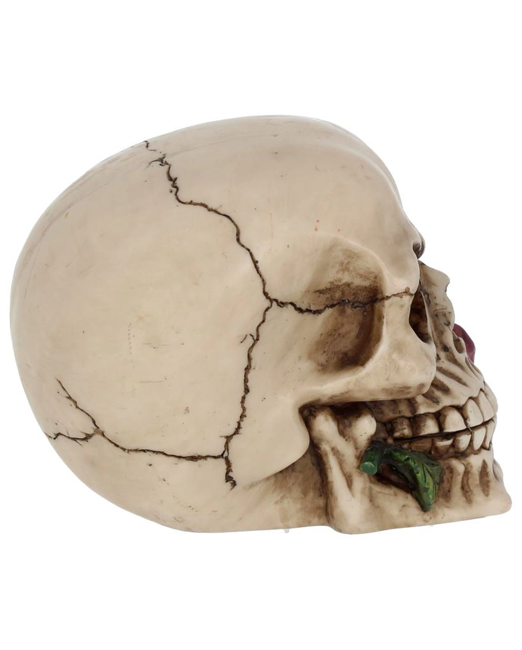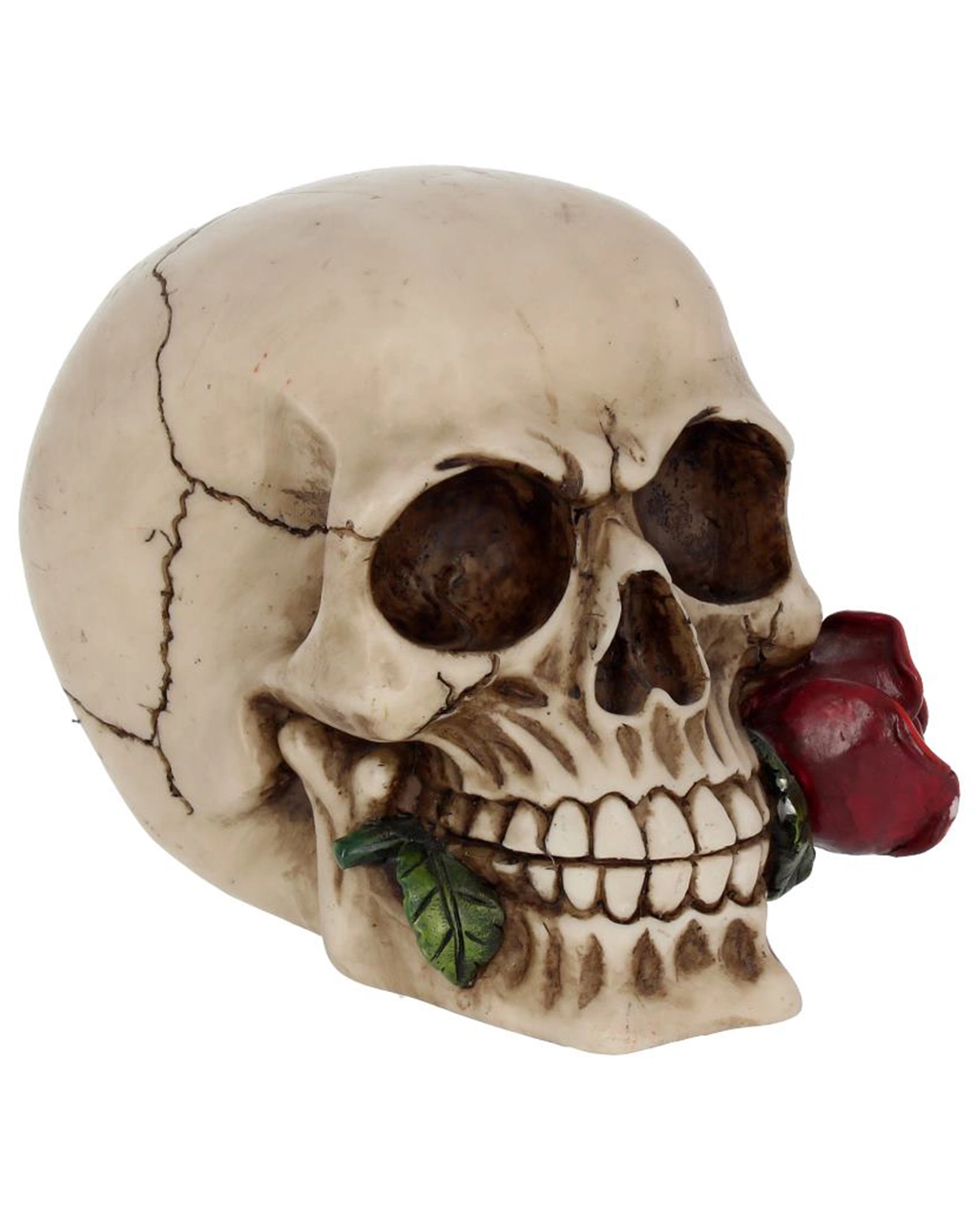 Lieferumfang: 1 x Beiger Totenschädel mit roter Rose 15cm