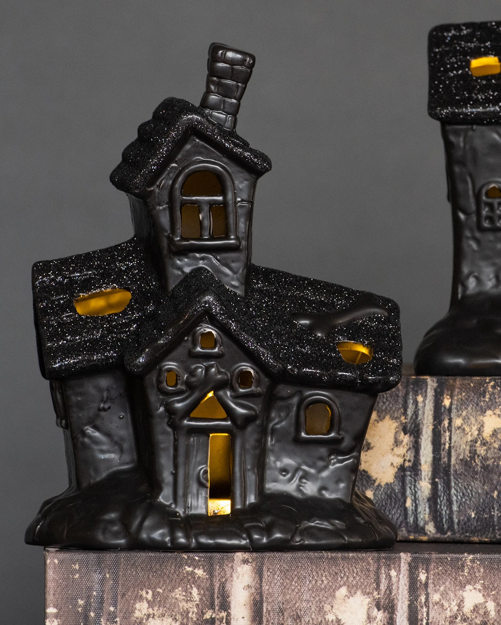 - Schwarzes Geisterhaus als Tischdeko für Fensterbank & Sideboard