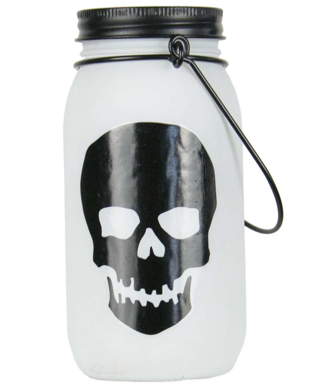 Lieferumfang: 1 x Beleuchtete Totenschädel Laterne aus Glas