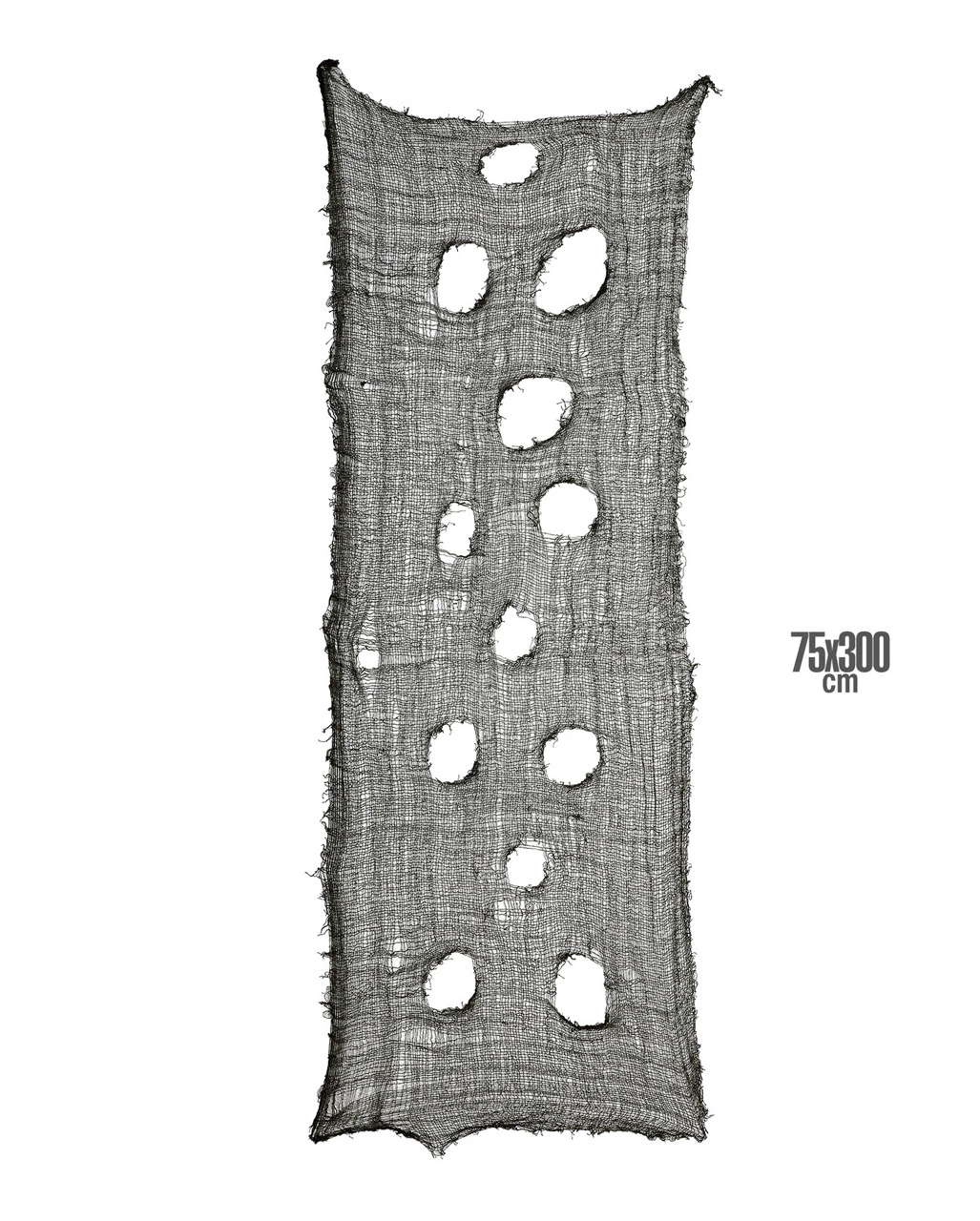 Mit unserem Halloween Lumpenstoff Schwarz hast du einen stimmungsvollen Halloween Vorhang im Cheeseclotch-Look gefunden. Der Gewebe Stoff als Halloween Dekoration lässt sich an Wänden, Decken und Türen anbringen. Seine zerfetzte Optik passt perfekt in den Rahmen einer Grusel-Party, denn durch die Löcher kommt sofort Horror-Stimmung auf! Dekoriere mit dem schwarzen Fetzenstoff und verwandle deinen Party-Raum in eine mystische Event-Location. Auch als Tischdecke sieht der zerfetzte Halloween Vorhang einfach super aus. Noch mehr Halloween Dekoration findest du auf Karneval Universe!