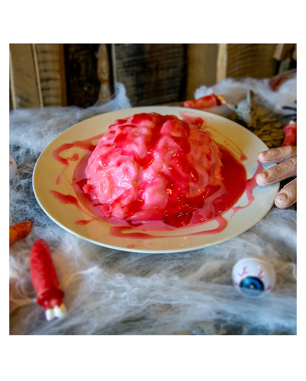 Überraschen deine Halloween Gäste mit einem stimmungsvollen Grusel-Buffet und serviere in der Halloween Puddingform Gehirn deine Nachspeise. Ganz gleich ob du Hannibal Lecter oder ein paar Zombies eingeladen hast, die Puddingform Gehirn lässt dich schmackhafte Süßspeisen passend zum Halloween Thema zubereiten. Dazu einfach Mandel- oder Vanillepudding in die Puddingform Gehirn geben, 2 Stunden abkühlen lassen, stürzen und dann mit roter Lebensmittelfarbe oder Himbeer Soße verzieren.