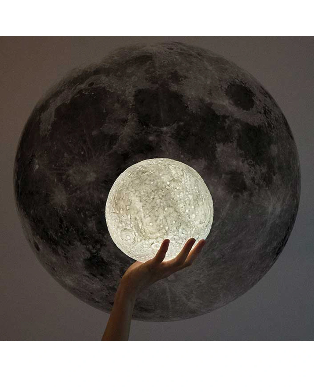 Der Mond als Wohnaccessoire ist ein Nachtlicht, das eine 1:1 Nachbildung des Mondes ist. Die Krater sind dank der integrierten Beleuchtung besonders realistisch dargestellt. Unsere Moon Lamp kommt mit einem dekorativen Holzständer und lässt sich nahezu an jedem Ort platzieren. Mit der Fernbedienung kannst du wahlweise einen sanften Farbwechsel, Schlummerfunktion und zahlreiche Leucht-Modi einstellen. Insgesamt können 7 Farbtöne sowie verschiedene Weiß-Nuancen eingestellt werden. Die Mondlampe verfügt über einen integrierten 1.200mAh Akku, inkl. USB Ladekabel.
