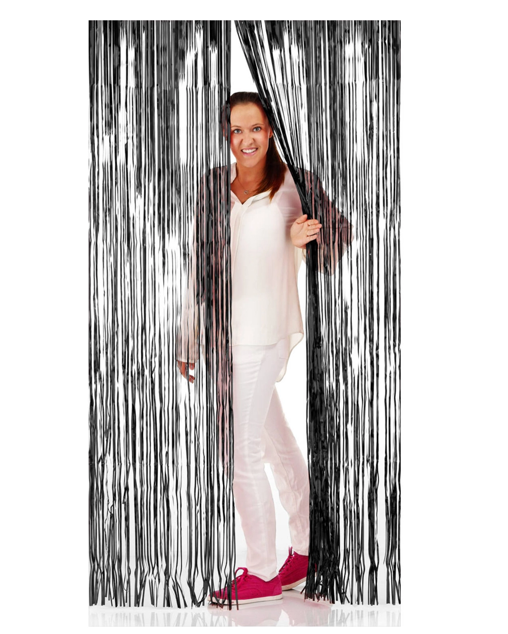 Der schwarze Fransen-Türvorhang aus Folie ist einer dieser kleinen Gimmicks, die aus deiner Party etwas Besonderes machen. Wenn die Hexen und Vampire an Halloween durch lange schwarze Fransen huschen oder die Gäste deiner legendären Silvester Partys den festlich geschmückten Raum betreten und vorher einen glänzenden Lametta Vorhang durchschreiten, ist die Vorfreude groß. Mit dem festlichen Lametta-Vorhang kannst du Räume außerdem optisch abtrennen, ohne die Türen schließen zu müssen. optisch den Raum ab, ohne dabei eine Tür zu schließen. Es gibt sicher viele gute Gründe, sich für einen festlichen Lametta-Vorhang als Party Deko zu entscheiden. !
