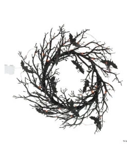 Lieferumfang: 1 x Schwarzer Gothic Kranz mit Fledermäusen & LED Licht