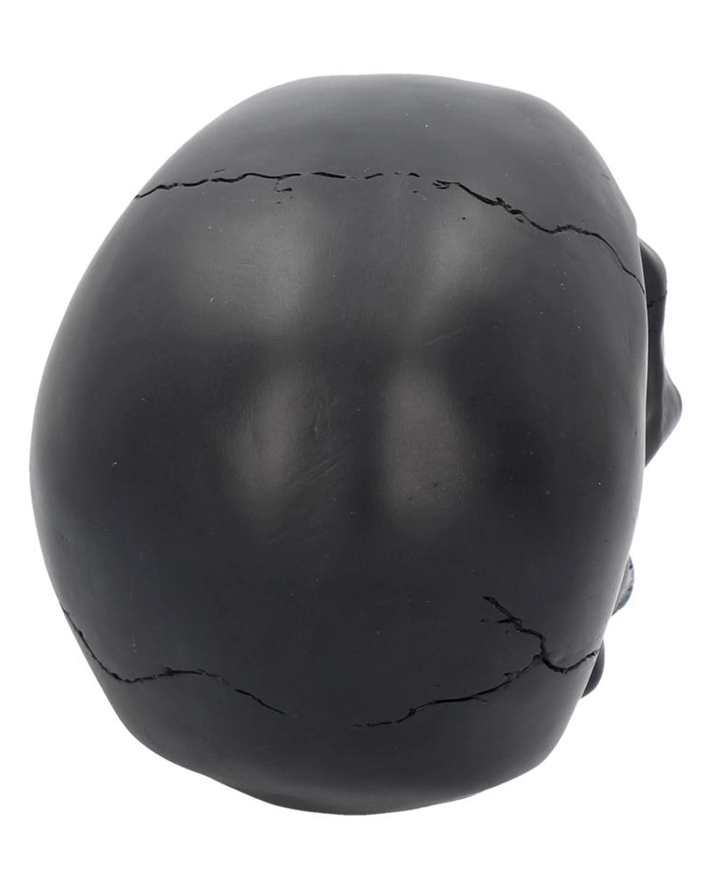 Unser rabenschwarzer Totenschädel besitzt goldene Zähne und eine dazwischen eingeklemmte goldene Rose. Die morbid düsterer Romantik, die der Totenkopf als Thema hat, wird immer wieder gerne als Gothic-Wohnaccessoire bestellt.