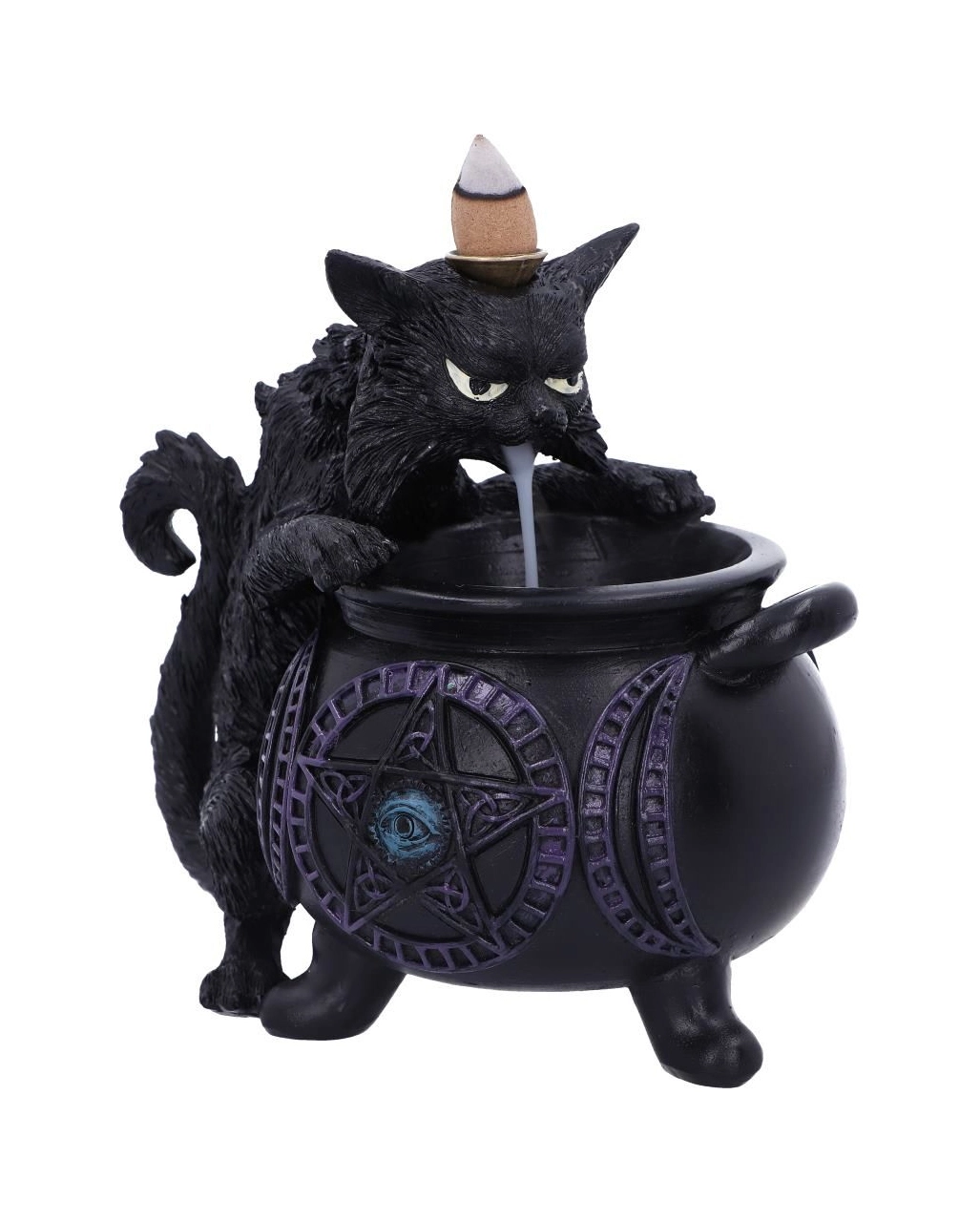 - Katze mit Hexenkessel Backflow Räucherkegelhalter