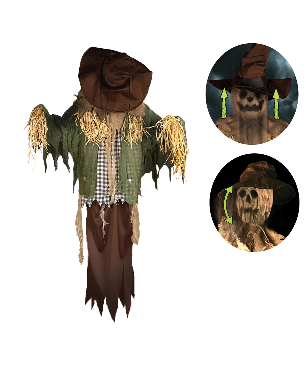 - Vogelscheuche hebt und dreht den Kopf und gibt schreckliche Geräusche von sich