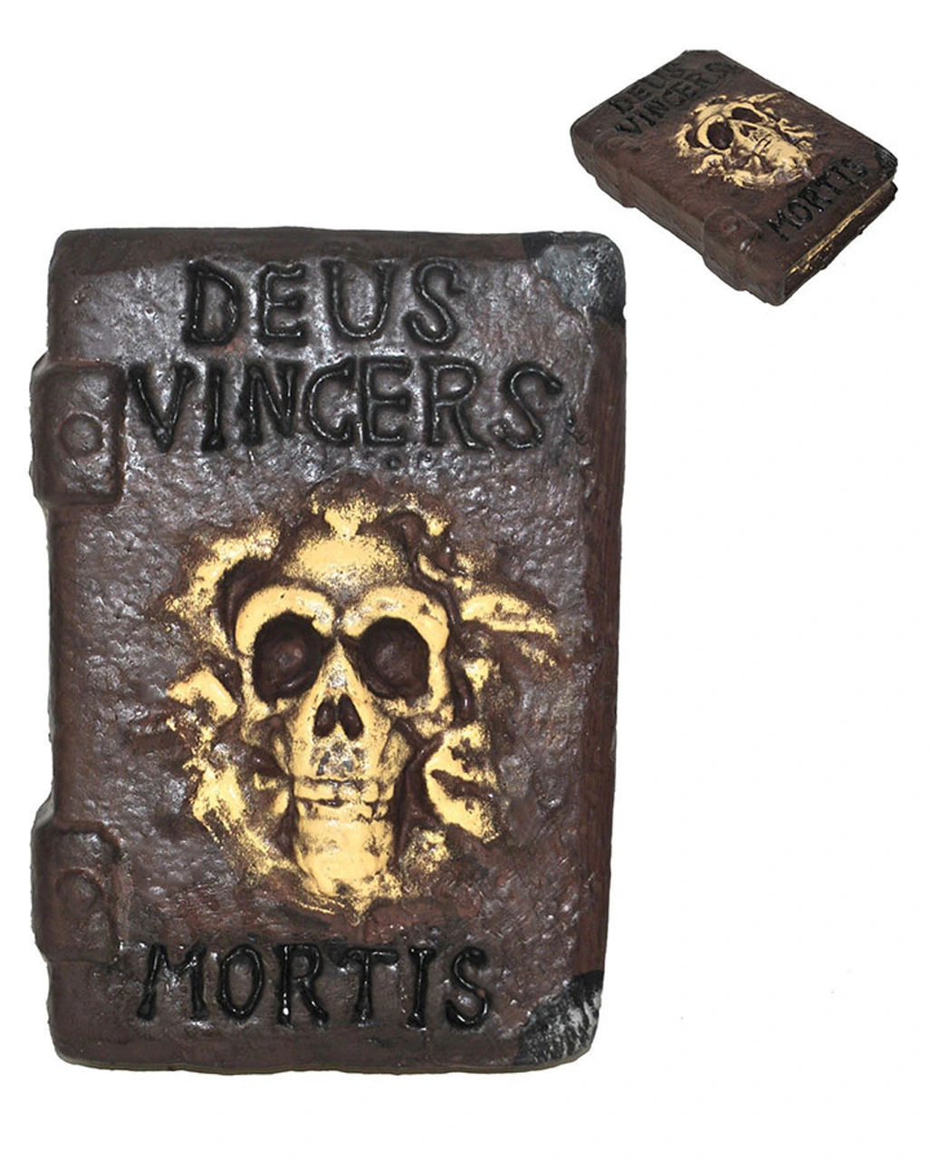 Das Zauberbuch mit Totenkopf ist das ideale Hexen Kostüm Zubehör. Mit diesem Hexenbuch, das dank der Lederoptik täuschend echt aussieht, wird man dich an Halloween für einen echten Magier halten. Deine Kunst verrät die Aufschrift Deus Vincers Mortis. Dein Hexen Kostüm Accessoire ist nichts Geringeres, als ein Zauberbuch, mit dem du Tote zum Leben erweckst. Kein Wunder, allein beim Anblick des Kostümzubehörs fangen Herzen an zu rasen.